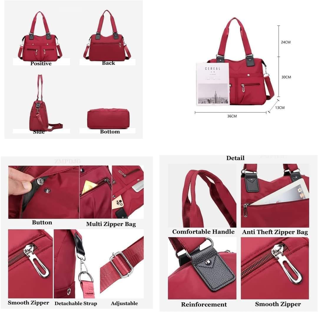 Large Capacity Waterproof Multi-Pocket Nylon Shoulder Bag, Fashion Handbag